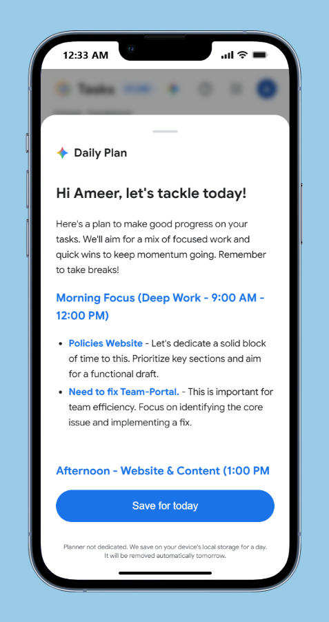 The plan is temporary. It saves locally for the day and resets automatically tomorrow. This prevents backlog pressure from building up.