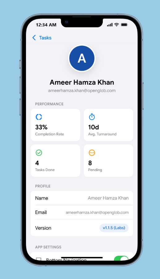 It’s the first live application in the OpenGlob ecosystem, built with a mobile-first mindset. The interface is intentionally simple. You open the app and immediately see your work. No dashboards to configure. No setup steps to complete.